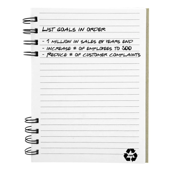 The Journal notebook combines durability with sustainability, featuring an extra heavy-duty cardboard cover made from recycled paper and a vibrant colour stripe made from recyclable non-woven material. Inside, you’ll find 69 double-sided pages of recycled lined paper, complemented by a blank black ink pen made from recycled paper. The sturdy metal ring binding keeps everything together, while the recycled logo on the back cover and each page shows your commitment to the planet!
