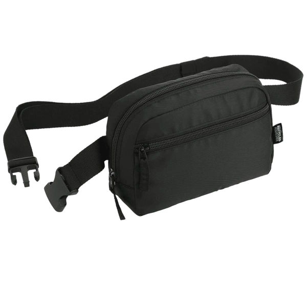 Made from RPET, the on-trend Recycled Sport Fanny Pack will be your new everyday accessory. This fanny pack features an adjustable waist strap and a roomy zippered main compartment for keeping your belongings safe. Main material, lining, webbing and zipper tape are 100% recycled polyester.