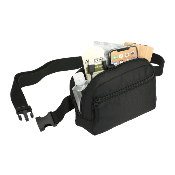 Made from RPET, the on-trend Recycled Sport Fanny Pack will be your new everyday accessory. This fanny pack features an adjustable waist strap and a roomy zippered main compartment for keeping your belongings safe.