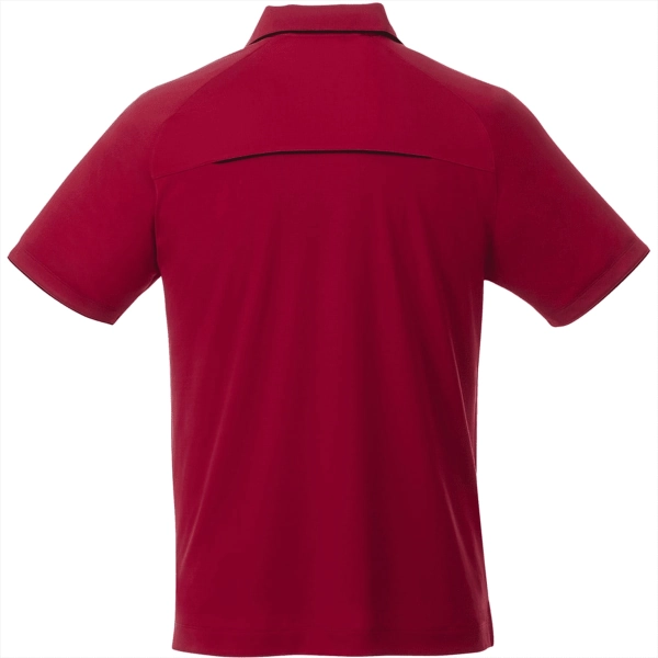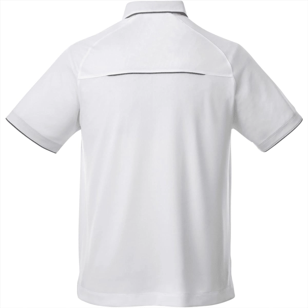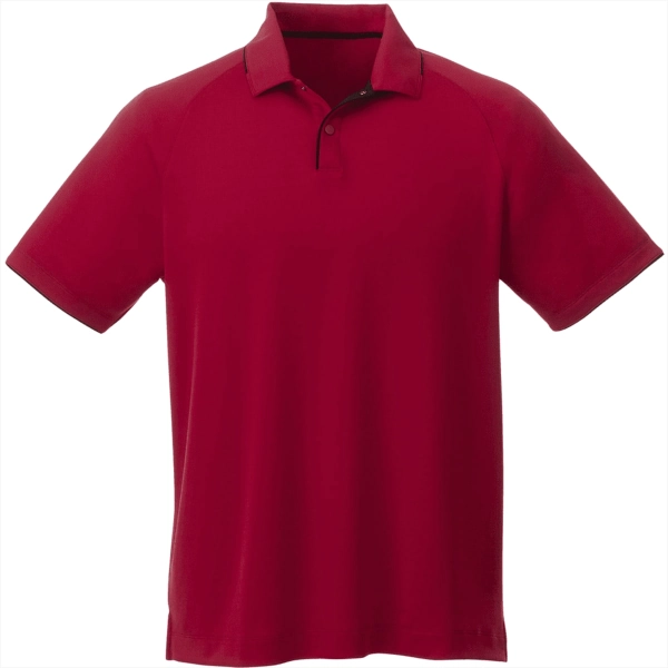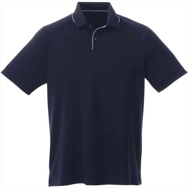 The men's Remus polo is constructed with a breathable matte finish fabric with moisture wicking properties. It has a snap placket, self fabric collar, and contrast inner neck tape. This style is also snag resistant and provides UV protection (UPF 40+).