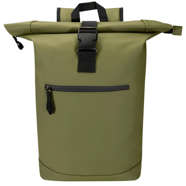 Crafted from premium recycled PU leather with colour-matching RPET lining, this rolltop backpack blends modern style with lasting durability. Its water-resistant finish keeps your essentials protected, while the rolltop closure offers flexible storage, perfect for commuting, travel, or the gym. Inside, a padded compartment fits laptops up to 15.6", with an additional zipped pocket to keep your tech and daily essentials organised. On the exterior, a front zipped pocket with a waterproof zip provides secure access, while padded, adjustable shoulder straps and a breathable back panel ensure all-day comfort.