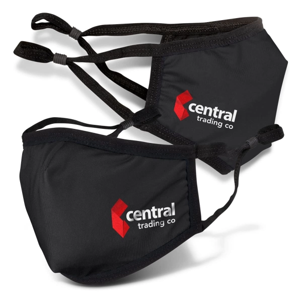 Premium face mask which can be reused by hand washing it in warm water. This deluxe mask features a nose wire to provide a more secure, comfortable fit and has matching black ear loops with adjustable silicone toggles to ensure one size will fit most people. The mask has darts stitched into the front panel to create more structure, keeping the mask's material away from the nose and mouth. This mask provides protection with three layers of material manufactured from a blend of 130gsm cotton and spandex. This face mask is manufactured for use in the home or for recreational or occupational use and must be ordered in multiples of 25pcs. A production lead time of 25 working days applies to this product by air freight and larger orders can be sea freighted on request to reduce the freight cost.