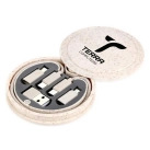 The Reveal Circle Eco Cable Set is a compact, eco-conscious charging kit designed for everyday convenience. It’s housed in a sleek circular case with a magnetic sliding lid and split ring attachment, making it easy to clip onto your keys, bag, or lanyard. Inside, you’ll find a Type C to Type C adapter, plus Type A, Micro USB, and iOS adapters – all designed for fast charging and broad device compatibility. A grey insert keeps everything neat and secure. This practical set is available in two sustainable material options: Natural Wheatstraw. Recycled ABS in Red, Yellow, Black, White, Green, and Blue.