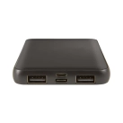 Manufactured from 2 Recycled PET bottles, the Rhodes Eco powerbank delivers power beyond its size and easily fits into your pocket! The Rhodes provides a 5000 mAh, A-Grade Lithium-Polymer battery packed into a slim and lightweight RPET case and features Type-C and Micro USB inputs, Type-C and dual USB-A outputs, LED capacity indicator and protection to stabilise the output voltage and prevents overcharging or short circuit. Includes a Type-C charge cable, user manual and recycled packaging. Material: RPET.