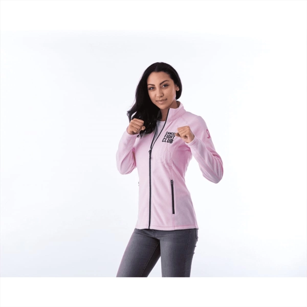 The comfortable Rixford offers a classic look for chilly weather. Made with 100% polyester anti-pill microfleece, it features an interior thumb grab at the end of each sleeve and a contrast hanger loop inside the neck. Thoughtful details like easy grip zipper pulls add to the Rixfords retail feel, and the womens style has a dropped back hem, shaped seams and tapered waist for a more natural fit. The versatile Rixford is a stylish look for any brand.