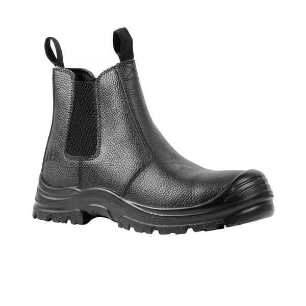 Split cow leather embossed | Sole: Dual density PU injection | Elastic sides | Polyester mesh lining | Removable EVA insock | 200J impact resistant steel toe cap | Toe protection with kick lug and rare heel kick off lug | Shock absorbent heel | Oil resistant, anti-static sole | SRC slip resistant sole | Individually boxed, carton of 5 | Meets AS/NZS 2210.3:2009 Certified by BSI BMP No 702610