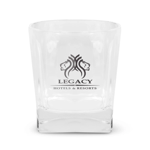 Stylish 250ml glass tumbler with a square base. It laser engraves to a natural etch and can be presented in an optional black gift box. This product is not dishwasher safe and handwashing is recommended.