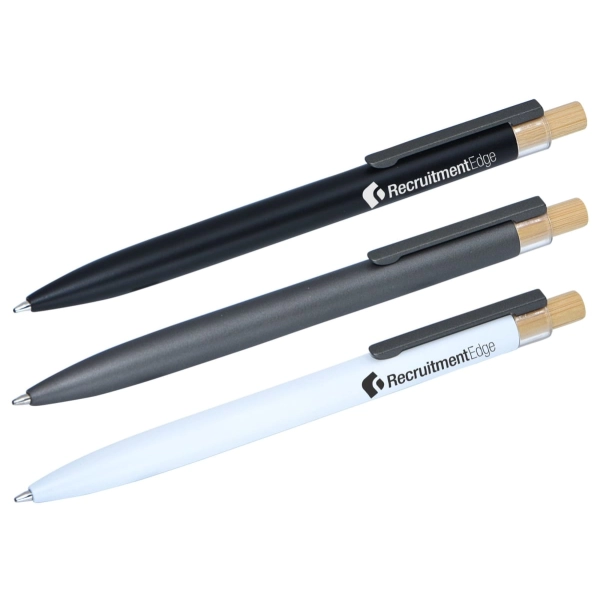 Recycled Pens echo your commitment to a cleaner planet by giving new life to existing resources. The barrel of Roma Recycled Pen is made from recycled aluminium and the push button from natural bamboo making this pen a must have for the environmentally conscious consumer. (Part of our Eco-Friendly Pen Range)