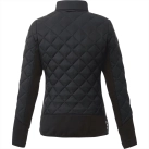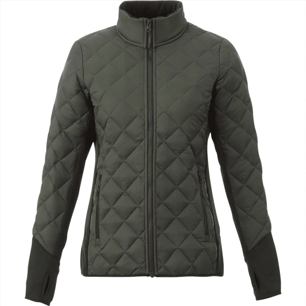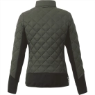 The women's Rougemont hybrid insulated jacket offers superior lightweight warmth for an active lifestyle. A water repellent finish keeps you dry while system snap tabs that make it easy to add it to another jacket as a warm inside layer. For comfort, this jacket features a dropped back hem, contoured cuffs with thumb exits, and articulated elbows. An interior media pocket and cord guide keep devices accessible. The women's version has shaped seams and a tapered waist for a flattering fit.