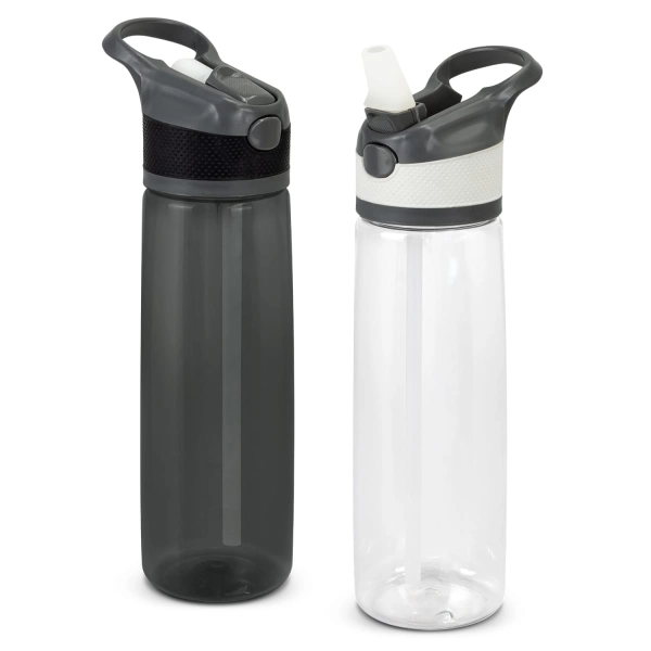 Timeless 800ml water bottle which has a secure screw on lid that has a carry handle. Rover is manufactured from polyethylene which is durable and lasting. Other features include a push button release for the flip-out drinking valve with a straw. This product is not dishwasher safe and handwashing is recommended.