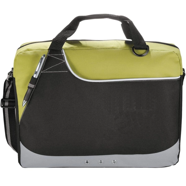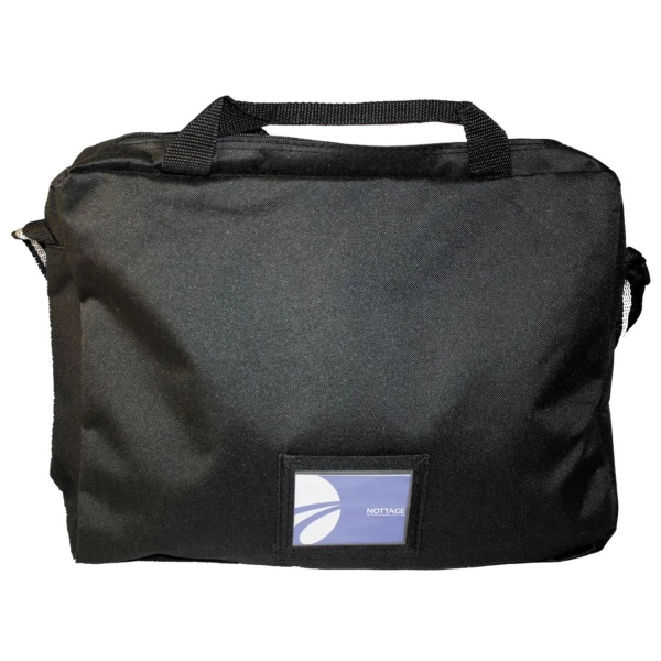 Made from 600D polyester. Zippered main compartment and easy-access front pocket. Supplied with business card stitched on bag.
