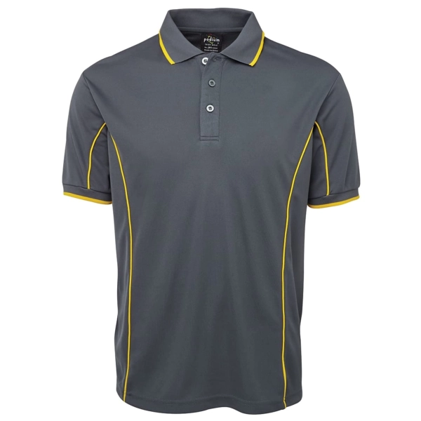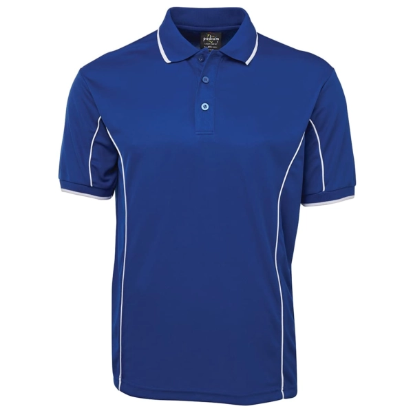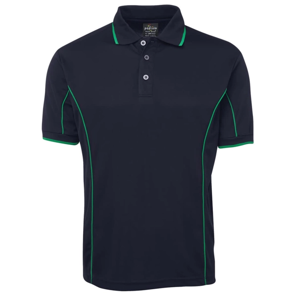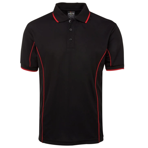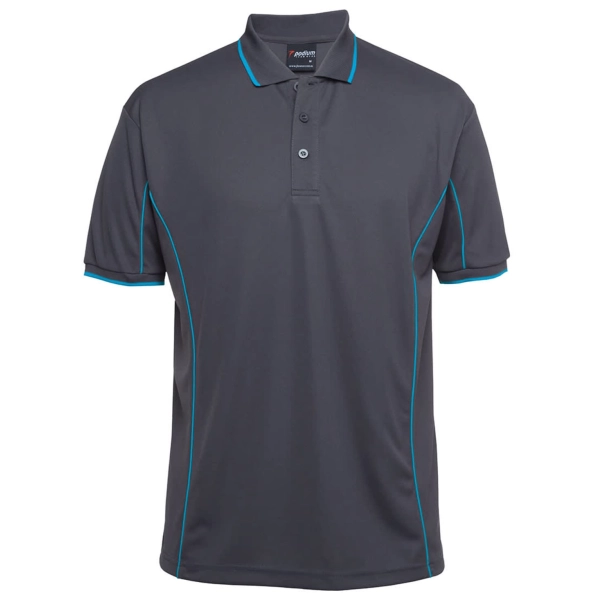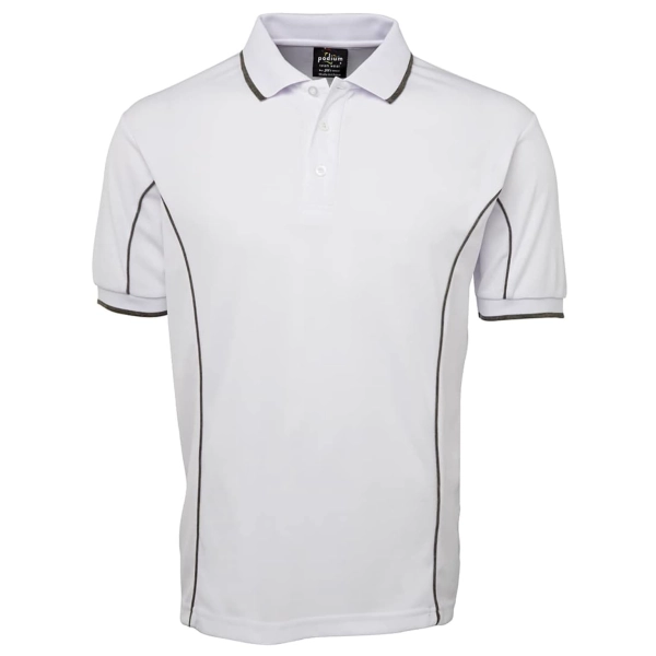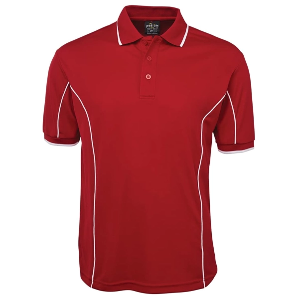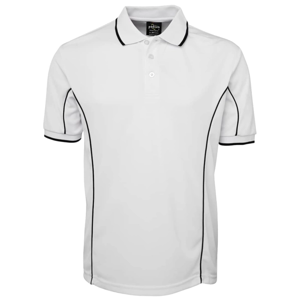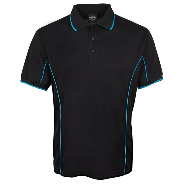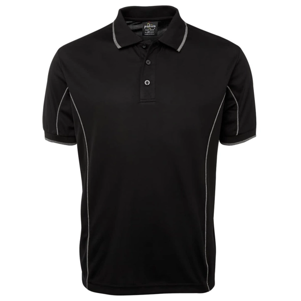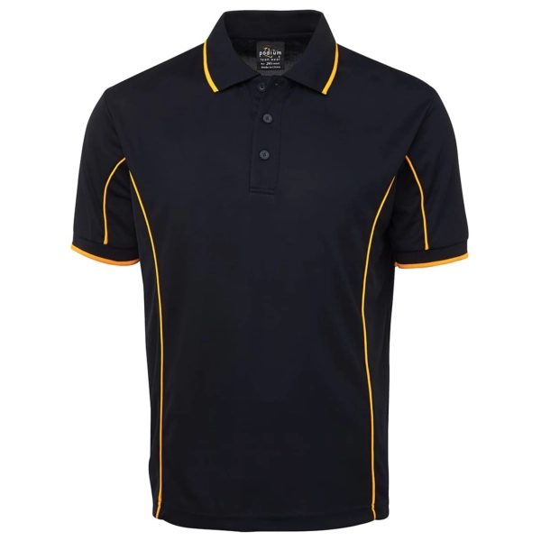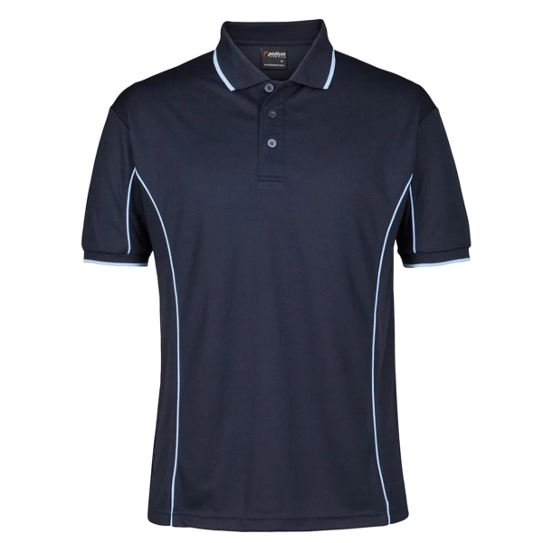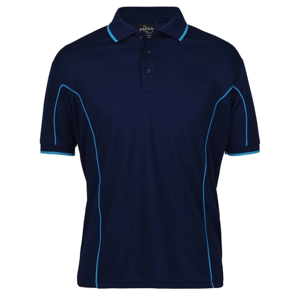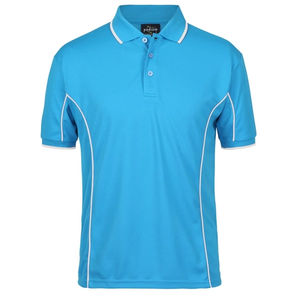 Classic Fit | 100% Polyester, 160gsm pique knit fabric | Podium Cool™ moisture wicking fabric designed to help keep you cool and dry | Complies with Standard AS 4399:2020 for UPF Protection | Straight hem with side splits | Easy care, quick drying fabric | XS only in Black/Aqua, Black/Grey, Black/Orange, Black/Red, Black/White, Charcoal/Aqua, Charcoal/Red, Jnr Navy/Aqua, Navy/Gold, Navy/Green, Navy/White, Royal/White | 2XS only in Navy/White, Jnr Navy/Aqua, Charcoal/Red, Black/White | 6/7XL only in Navy/White