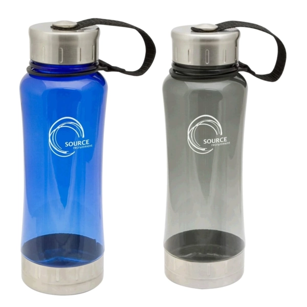 Ideal for indoor or outdoor use. This lightweight, near-unbreakable bottle featuring stainless trim is designed to go the distance. Available in translucent charcoal and deep blue.