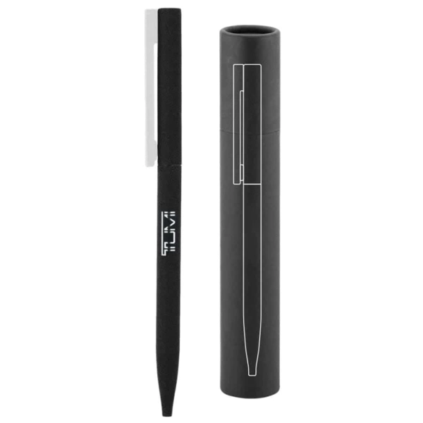 The Sari Pen is a slim, twist-action ballpoint with a smooth rubberised finish for a comfortable grip. It features a Black German ink refill and is engraved to reveal a stunning mirror finish, giving it a sleek, polished look.