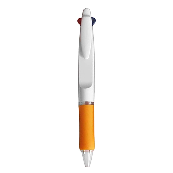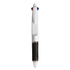 Click action 2 colour refill plastic pen white opaque body with clip and coloured rubber grip high quality German manufactured red and blue ink refill 1800 meters writing distance tungsten carbide ball provides you with quality writing.