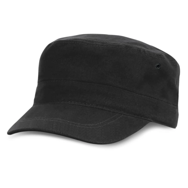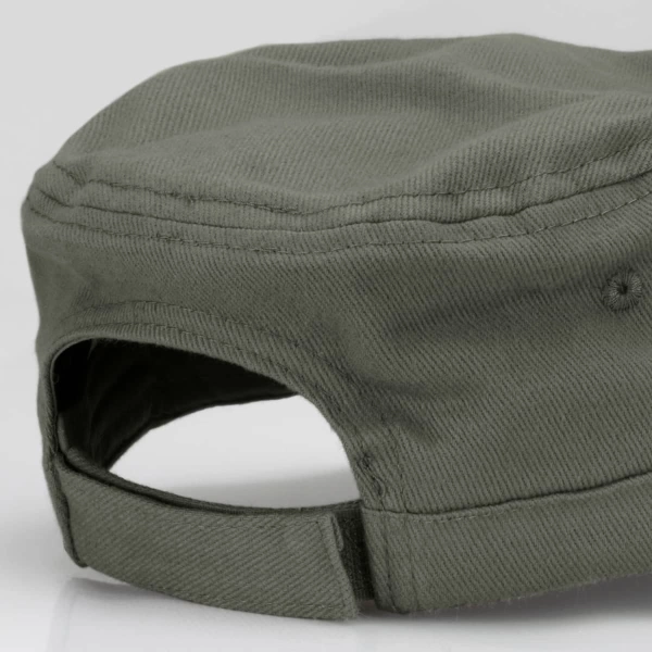 Military style heavy cotton cap which is popular for promotion or as part of a uniform. It has a pre-curved peak and a sweatband along with an adjustable velcro closure which allows one size to fit most people.