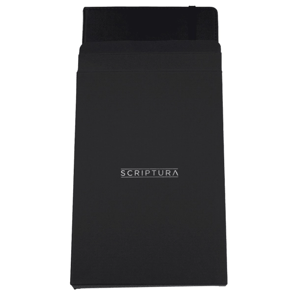 Exclusively designed Scriptura notebook (A5 size) made from imitation leather. Certified sustainable inner pages.