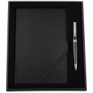 Exclusive design Scriptura imitation leather notebook gift set including a ballpoint pen and an A5 size notebook. Supplied with Black Ink