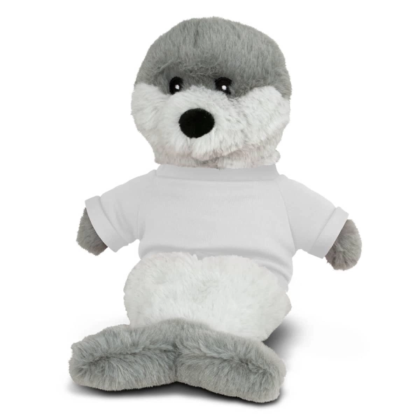 Soft seal plush toy with embroidered eyes, RPET filling and a polyester t-shirt which is available in eleven colours. Plush animals provide a cute and cuddly branding option and are great for brand recognition and spreading goodwill. They have also been manufactured to meet AS/NZS Safety Toy Standards.