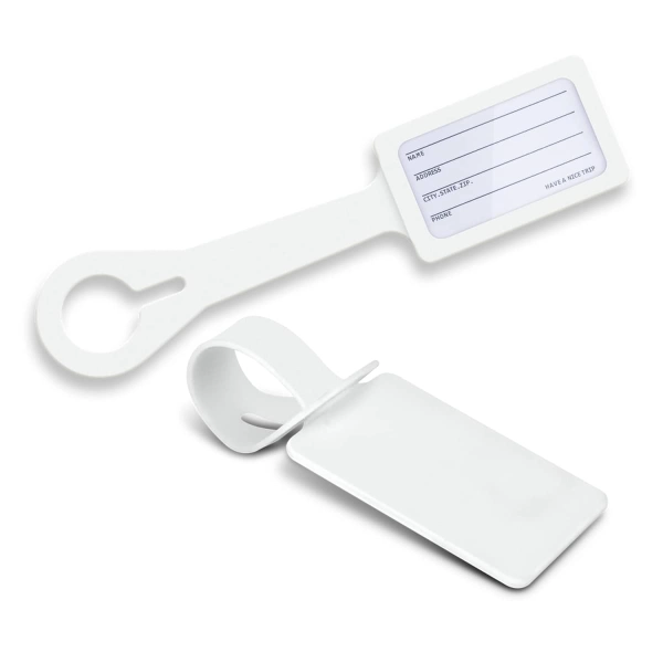 This flexible silicone luggage tag features a slim, all-in-one design for easy attachment to any bag. It includes a secure address card holder for your contact details, helping to identify your luggage quickly and easily.