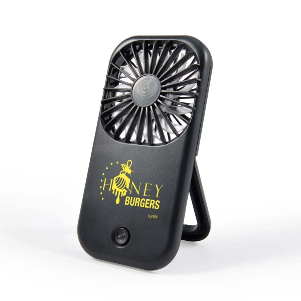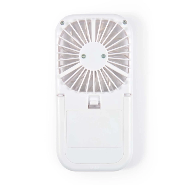 Introducing the Sirocco Fan, your portable cooling solution in white. This battery-operated fan features two speeds and includes a convenient two-position support stand for versatile use. Adjust the fan speed easily with the push button, which also serves as the on/off switch. Each fan comes with three AAA batteries included, and an insulator prevents accidental activation, ensuring safety until removed before use.