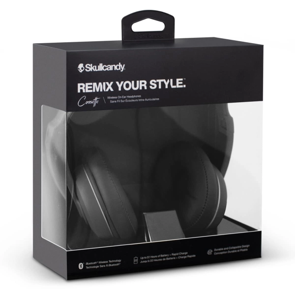 A performance and lifestyle brand driven by creativity and youth culture, Skullcandy creates modern audio accessories for those who live and breathe music. Inspired by classic designs from the '80s and '90s, Cassette features style, comfort, durability, and sound quality far beyond its price. The collapsible design features Bluetooth technology, plush ear cushions, and pivoting ear cups and provides comfortable and compact listening on the go. The Cassette headphones have a play time of up to 22 hours and feature a rapid charge function. They can be used with an AUX cable and have a microphone as well as call, track and volume control buttons. The headphones feature the Skullcandy logo on the headphone arms and are presented in Skullcandy packaging. Please note the branding on the packaging is subject to change without notice, and this product cannot be supplied unbranded or without the Skullcandy branding.