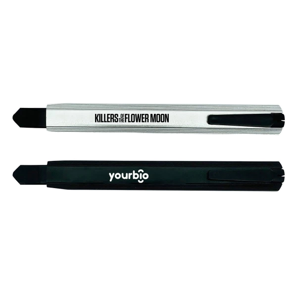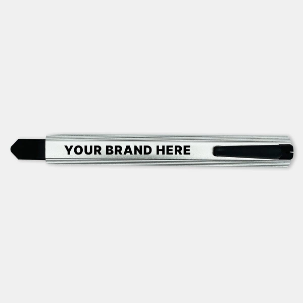 Our slimline retractable box cutter is the perfect tool for any cutting job! This useful tool features a retractable blade, is lightweight & has a plastic pocket clip.