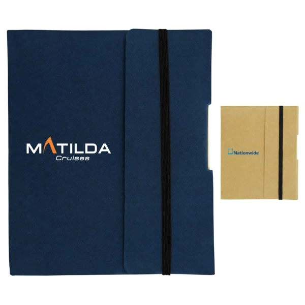 The Small Tuck Journal is a compact, eco-friendly choice, featuring a heavy, flexible paper cover made from recycled material. Inside, you’ll find 79 pages of recycled lined paper, along with a blank black ink pen made from recycled paper. The elastic band keeps everything neat and secure, and both the inside cover and each page proudly display the recycled logo. It’s the perfect way to stay organised while making a sustainable impact!
