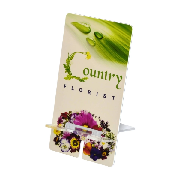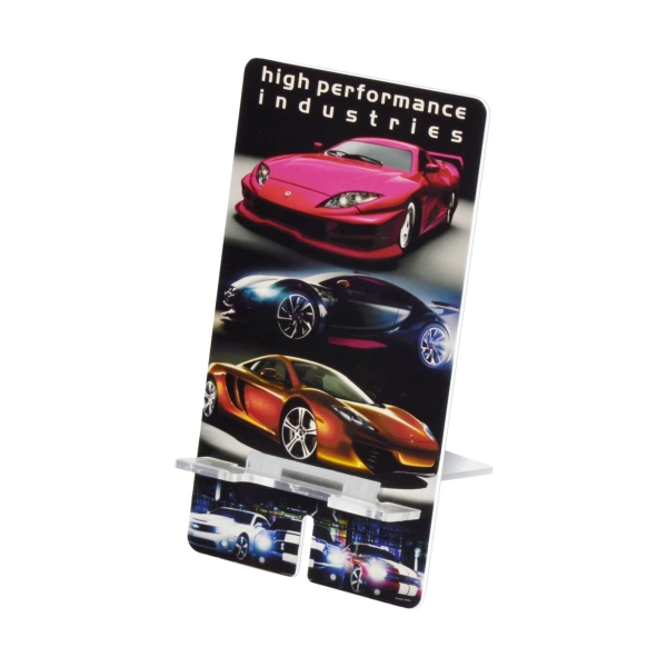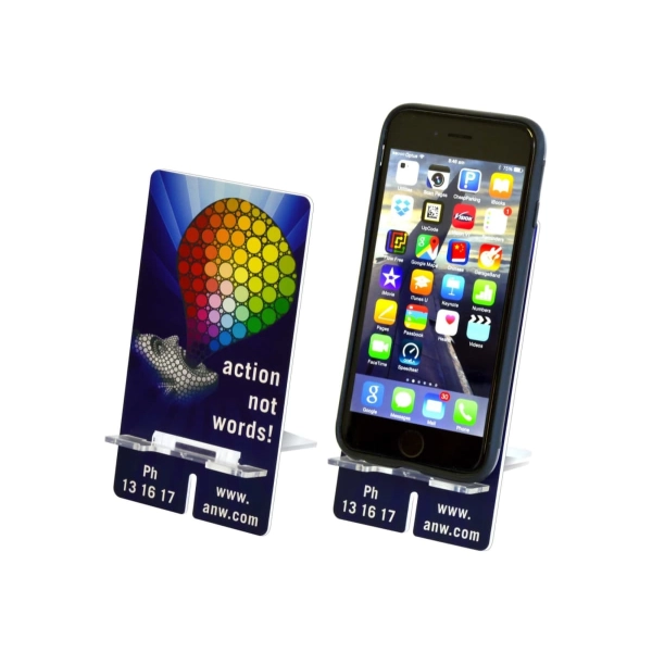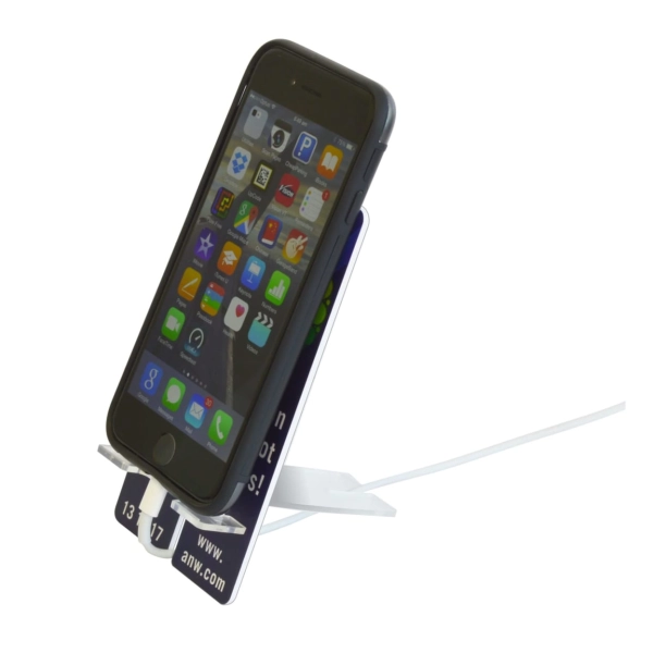 Smart Phone Stand is the perfect desk accessory to promote your brand. Printed in full colour, this phone stand ensures that your logo and message stands out above the desk for all to see. Supplied flat packed (ideal for mailing).