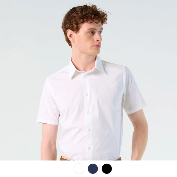 Stylish and functional, the Broadway Shirt is manufactured from a blend of 140gsm cotton and elastane, making this shirt well-suited for retail and hospitality workplaces. This shirt features short sleeves, a single button colour, and a seven-button placket. This shirt is a European fit and is available in eight sizes. Washing it with similar colours before first use is recommended.