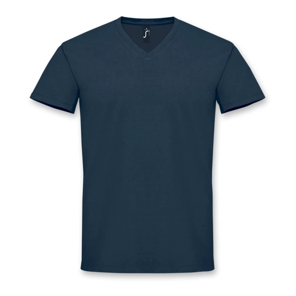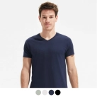 Smart men's cut and sewn, short-sleeved V-neck t-shirt. It is manufactured from a blend of viscose and 190gsm heavy jersey, semi-combed ring-spun cotton which gives the garment a soft, smooth feel as well as providing an excellent branding surface. The elastane ribbed collar has tape reinforcing to strengthen and maintain the collar shape. The t-shirt is a European fit and is available in six sizes.
