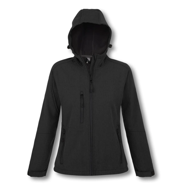 Versatile women's 340gsm, long sleeve softshell jacket which is manufactured from a blend of polyester and elastane which is wind-resistant and has a waterproof rating of 8,000mm (waterproof in light conditions). The jacket has triple-layer insulation with a cosy fleece lining, and it is designed as smart outdoor casual wear for all seasons. It has a full zippered front which extends to include the high collar, a hood with a drawstring, two zippered side pockets which double as hand warmers, one large internal zippered pocket and one zippered chest pocket. Other features include a longer back panel, adjustable cuffs with a self-gripping fastener and an adjustable elastic waist closure for additional warmth. Replay is a European fit and is available in six sizes.