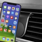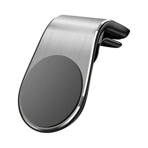 Protect yourself and your family by mounting your phone directly to your car air vents when driving using GPS or talking on the phone. This modern L-shaped phone holder is sturdy, portable and stylishly finished in lightweight brushed aluminium. With 5 strong magnets to firmly hold your phone and soft rubber to stabilise and protect your air vents and phone from scratches. Compatible with all iPhone, Samsung and other mobile phone models when used with the supplied metal plate supplied. Material: Aluminium, Rubber.