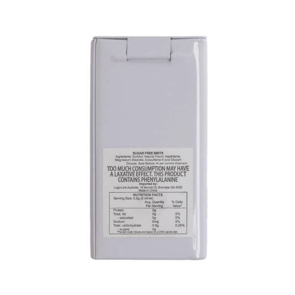 Indulge in refreshing sugar-free spearmints conveniently stored in a white flip-top tin. Each tin contains 25g of mints, ensuring plenty of fresh breath moments on the go. The shrink-wrapped lid seals in freshness, guaranteeing every mint is as crisp and invigorating as the first.