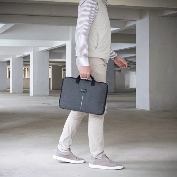 The Specter 2 Tri-way laptop bag organiser is not just an ordinary laptop bag. It's a versatile corporate gift that will amaze you! This multifunctional carrier can be used in three different modes: handheld, shoulder, and crossbody backpack. The Specter 2 is constructed from recycled ♻ PET bottles and includes a spacious main compartment with a soft-touch padded laptop sleeve that can accommodate up to a 16-inch laptop. It also features multiple pockets and slots for your tablet, phone, charger, cables, pens, notebooks, and more. Additionally, it is made of durable and water/stain-repellent touring fabric that safeguards your devices and belongings from scratches, spills, and shocks. This makes it the perfect companion for your busy and dynamic lifestyle! Material: RPET