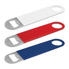 Large stainless steel bottle opener with a soft-touch vinyl coating.
