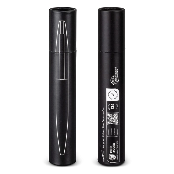 Premium twist-action ballpoint pen that is 100% carbon neutral and is made from recycled stainless steel and ABS. Elegance features a soft-touch rubberised barrel and has 1500m of black Dokumental ink. The lower barrel engraves to a mirror finish. The pen is presented in a SPICE branded paper tube.