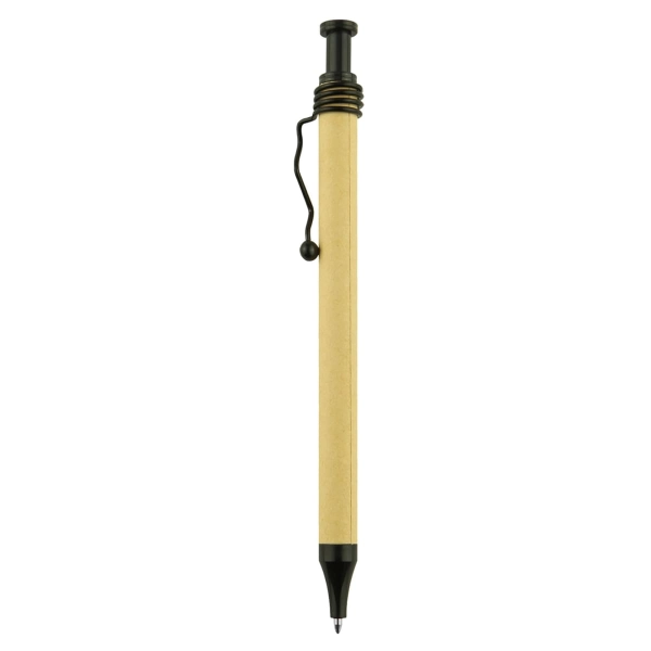 Elevate your writing with the click action spiral recycled cardboard pen. Featuring a sturdy cardboard barrel vibrant plastic coloured trims and a uniquely shaped clip. This pen combines style and functionality. With German manufactured black ink refill featuring a tungsten carbide ball ensuring a smooth and reliable 1200 meter writing distance.