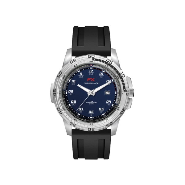 This quality sports watch features an Ionic steel plated alloy case, matt blue dial, black silicon strap, fixed bezel, date function and is water resistant to 3 atm’s.