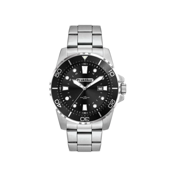 This quality sports watch features an Ionic steel plated alloy case with black aluminium turning bezel, sunray black dial and stainless-steel band. It also includes a date function and is water resistant to 3 atm’s.