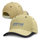 Fully customisable six-panel cap which is made from cotton twill and features an embroidered design on the peak. The colour of the cap fabric and the embroidery feature can be customised using colours from the standard colour palette. Other features include embroidered eyelets, a pre-curved peak, a sweatband and an adjustable snap closure which allows one size to fit most people. A production lead time of 35 working days applies to this product by air freight and larger orders can be sea freighted on request to reduce the freight cost.