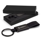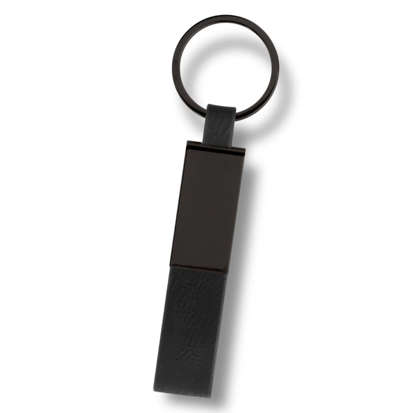 Stylish key ring that has a PU key ring with a nickel ring. It is presented in an individual black box.