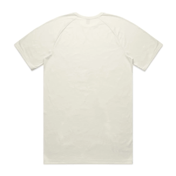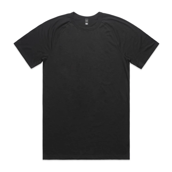 Self-fabric binding on neck, raglan sleeve, side seamed, shoulder to shoulder tape, double needle hems, preshrunk to minimise shrinkage, suitable for low to medium impact activities