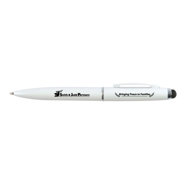 Elevate your writing experience with the Starion Pen, a premium heavy-weight ballpoint pen featuring a matte finish and striking silver accents. The pen includes a black stylus for added functionality and can be laser engraved to reveal a stunning mirror finish, adding a touch of sophistication. With a writing distance of 2.1 kilometres, this pen combines luxury with practicality. Available in three elegant colours, the Starion Pen is the perfect choice for those seeking a high-quality and customizable writing instrument.