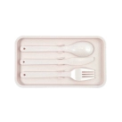 Introducing our 2-tier lunch box, crafted from a 50% blend of wheat fibre and BPA-free polypropylene, our 2-tier lunch box offers a sustainable alternative to traditional plastic lunch containers. It features two compartments for convenient meal separation, allowing you to keep your main course separate from sides or snacks. The middle compartment is equipped with an elastic strap to securely hold the included knife, fork, and spoon, eliminating the need for disposable cutlery and promoting sustainability. This lunch box also comes with a bamboo lid, making food preparation easy while adding a touch of natural elegance. It serves as an eco-conscious alternative to single-use plasticware, contributing to a healthier planet by reducing waste. While it's suitable for reheating food in the microwave, please note that it's not intended for cooking. For maintenance, hand washing is recommended to preserve the longevity of the logo on the lunch box and ensure continued quality.