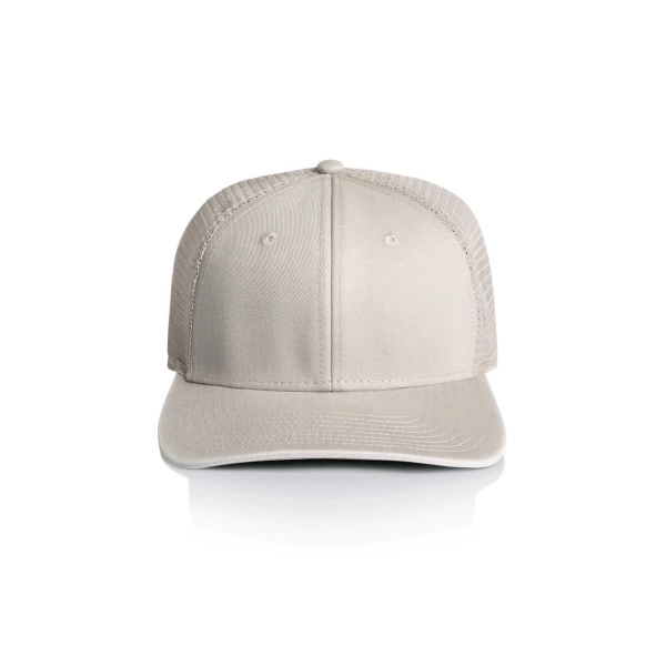 Washed finish front and peak with worn look, plastic snapback, tonal under-peak lining, mesh back