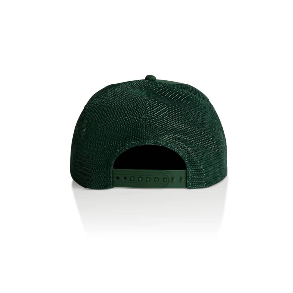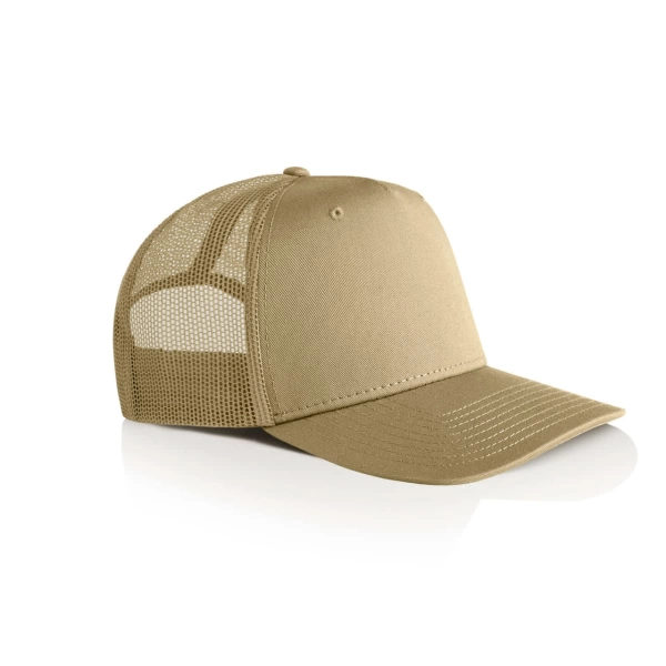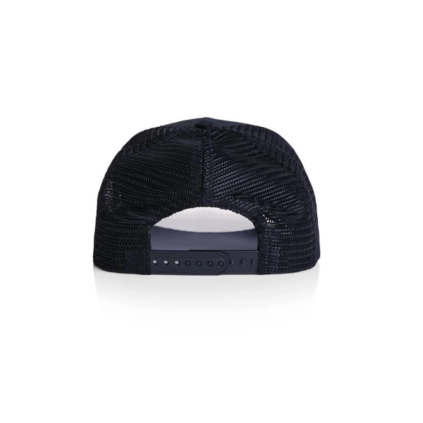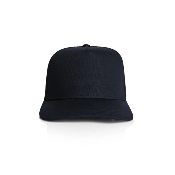 Explore the AS Colour Stock Trucker Cap: A high-profile snapback with a flat peak, featuring a mid-weight construction with a 100% cotton front and peak, paired with a breathable 100% polyester mesh back. Includes a plastic snapback closure, tonal under-peak lining, and tear-out AS Colour label for personalised comfort.