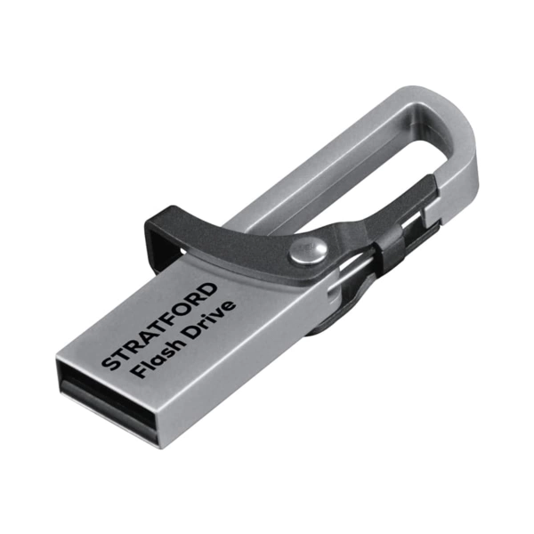The Stratford flash drive is manufactured in a brushed metal alloy with a contrasting mini snap-hook that securely clips to your backpack or jeans. Available in USB 2.0 or USB 3.0 and includes A Grade memory, a 10-year data retention warranty and a 2-year faulty manufacture replacement warranty. Material: Metal Alloy, Aluminium.