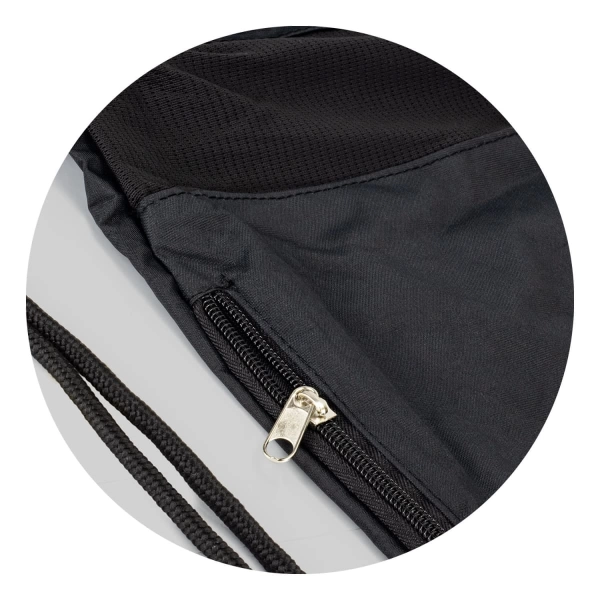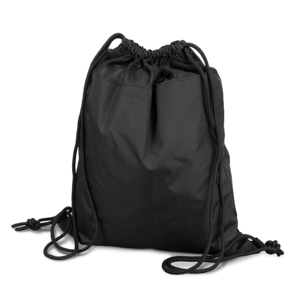 Lightweight and durable drawstring backpack made of high-density 1680D pongee ripstop, which is water-resistant, making it suitable for different activities. The backpack features a polyester mesh top insert and polyester strings that act as drawstrings for the main compartment.