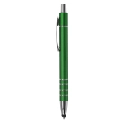 Aluminium stylish design pen with shiny silver chrome trim granular metallic barrel in a range of 5 colours and stylus for touch screen click action with plastic Parker-Type German manufactured black ink refill 1200 meters writing distance tungsten carbide ball provides you with quality writing.